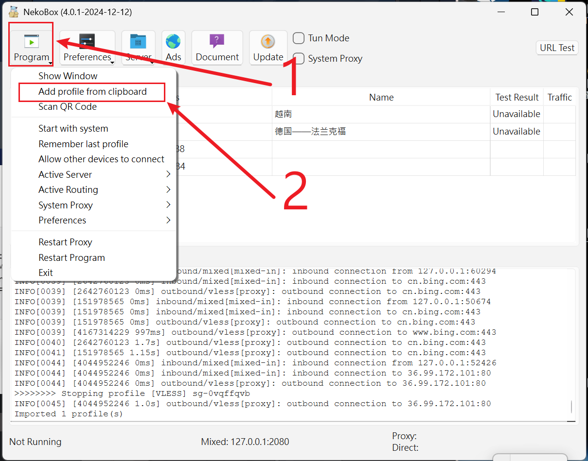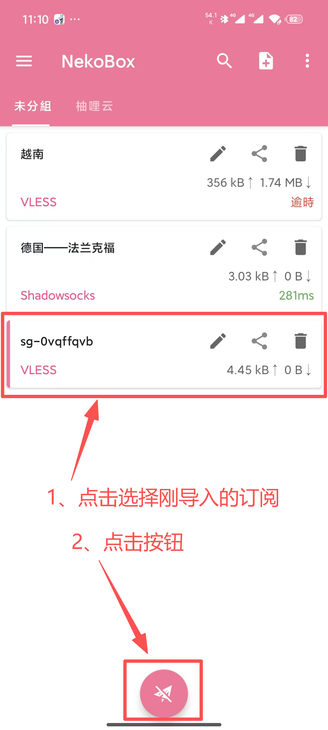 5、选择刚导入的订阅,点击下方按钮启动订阅